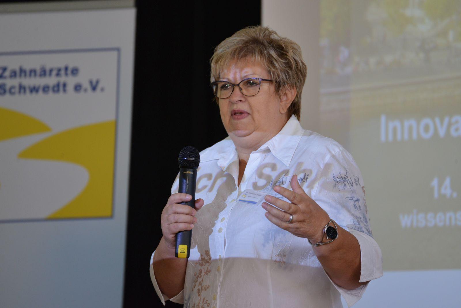 Nachdem in der Mittagspause ebenfalls allerhand Kulinarisches genossen werden konnte, informierte die Heilpraktikerin für Psychotherapie und Hypnose-Coaching-Therapie aus Schwedt Marion Scharfenberg über den „Weg zu mehr Gelassenheit – Möglichkeiten mit Hypnose“. Die anfängliche Übung brachte eine vollkommene Stille in den Raum, während alle auf die Kontaktflächen mit ihrem Stuhl in Konzentration gingen. Eine anschauliche Variante, einen Einblick in diesen Randbereich der Zahnmedizin zu bekommen. Ein klassisches, aber täglich aktuelles Thema stellte Christ Jung vor, ZMP und angestellt bei gsk. Sie gab allerhand Tipps in ihrem Vortrag „Dentin Hypersensitivität“ zu diesem sensiblen Thema.